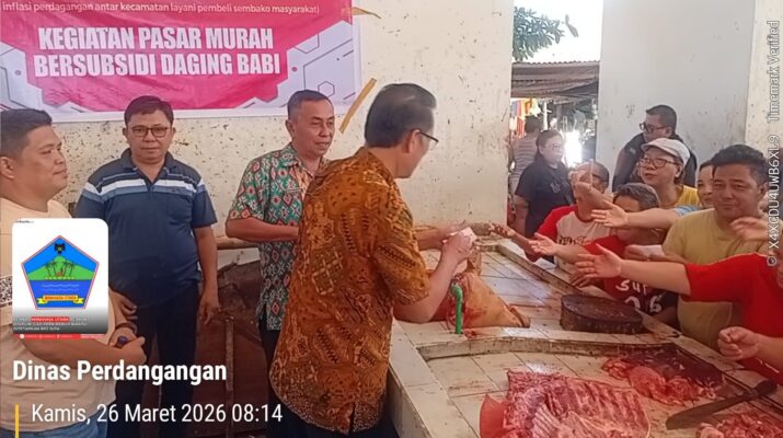 MINUT,MODLINENEWS.COM- Pemerintah Kabupaten Minahasa Utara (Minut) menggelar pasar murah dan membagikan kupon subsidi daging babi di Pasar Airmadidi, Kamis 26 Maret 2026. Program ini